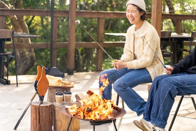 火を囲むことで会話が弾んだり、ちょっと非日常的な時間が過ごせたり。気軽なアウトドア体験として、ファミリーやデート、友人グループなど、あらゆる層のお客様にお楽しみいただけます。