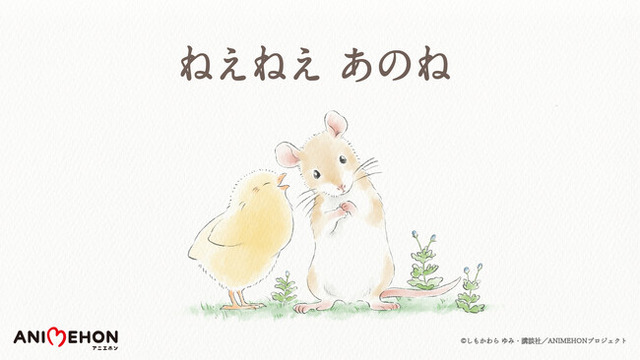 動物の愛らしさに、今世界からもっとも注目を集める絵本作家、しもかわら ゆみ による『ねえねえ あのね』。フランス・ドイツ・イタリア・スペイン・ロシア・ブルガリア・台湾・韓国・タイ・ベトナムから翻訳オファーを受けるなど、世界的な人気を集める作者の優しい世界が、あたたかく柔らかな光に包まれた映像で再現されます。