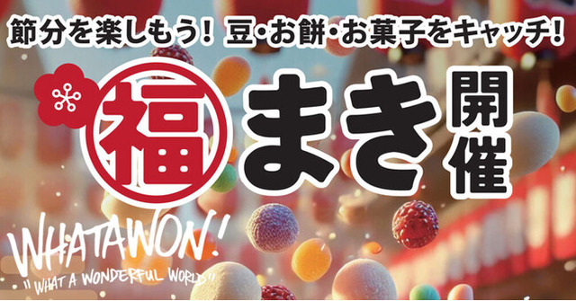 株式会社antiqua(本社:大阪府和泉市)が手がけるエンターテインメントモールWHATAWON(ワタワン)で、節分ならではの楽しさを満喫できるイベント『福まき&恵方巻ワークショップ』を開催いたします!豆まき大会や恵方巻作りの体験を通じて、日本の伝統行事を親子で楽しむ特別な1日をお届け。家族みんなで笑顔になれる節分イベントを、ぜひお見逃しなく!