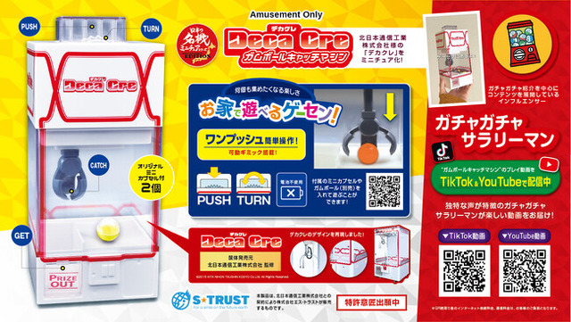 株式会社エス・トラスト(本社:大阪市西区、代表取締役:井田 金吾、以下 エス・トラスト)は、ジェミニシリーズやデカクレシリーズなどのアーケードゲーム機の機器の開発・製造・販売を手がけている北日本通信工業株式会社より「 Deca Cre(デカクレ)」のライセンスを取得し、アミューズメント専用景品(プライズ)のミニチュアギミック玩具として「デカクレガムボールキャッチマシン」を2025年1月5週より全国のゲームセンター・オンラインクレーンゲームへ順次投入いたします。