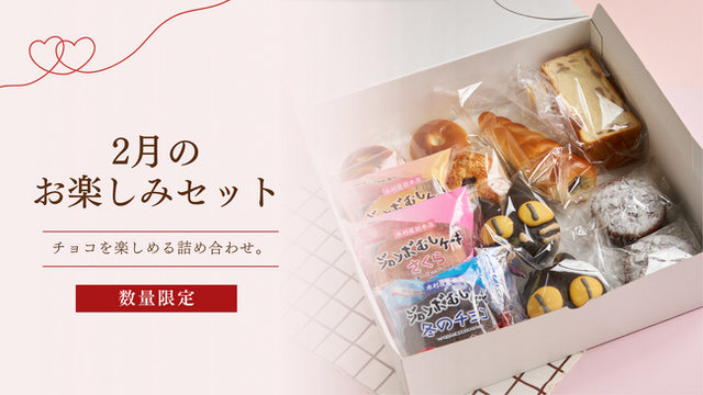 期間限定「2月のお楽しみセット」を100セット限定で販売します。送料込みのお得な詰め合わせで、「酒種 生チョコ」や「3種のチョコマフィン」などバレンタインにもおすすめのチョコを使用した菓子パンをお楽しみいただけます。