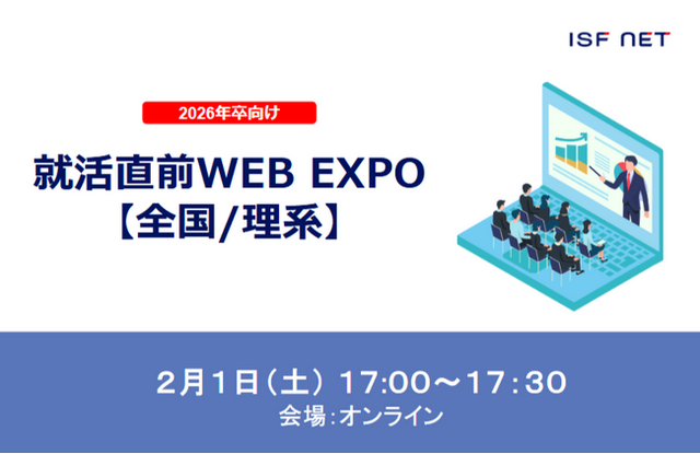 株式会社アイエスエフネット(本社:東京都港区/代表取締役:渡邉幸義、以下アイエスエフネット)は、2025年2月1日(土)に、オンラインで開催される、2026年卒業予定の学生向け「就活直前WEB EXPO【全国/理系】」に参加いたします。