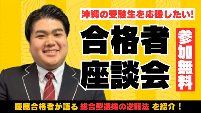 そんな彼が「高校の偏差値なんて関係ない」「沖縄の受験生を応援したい!」という気持ちから、Loohcs志塾沖縄校では「中原くんだからこそ語れる総合型選抜の合格までの方法」を紹介する座談会を実施することにしました。