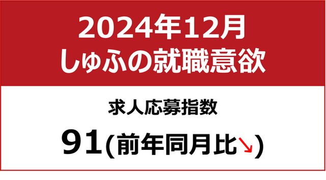 要因として、求人数は深刻な人手不足によって増加傾向な一方で、応募数は例年通り減少したことが考えられる。12月は特に子育て層の就職活動が鈍化する傾向にあるので、応募数は減少しやすい。