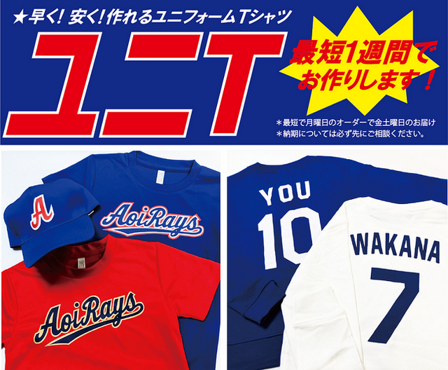 当店の「ユニT」でユニフォーム代が従来の半額以下となることで、金銭的な負担を減らして野球を始める子供達が増えることを願います。それが野球振興の一助になれば嬉しい限りです。