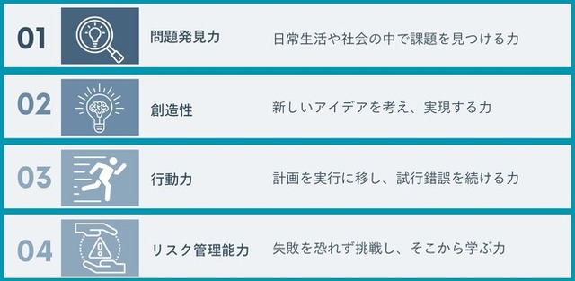 アントレプレナーシップには、以下のようなスキルが含まれます。