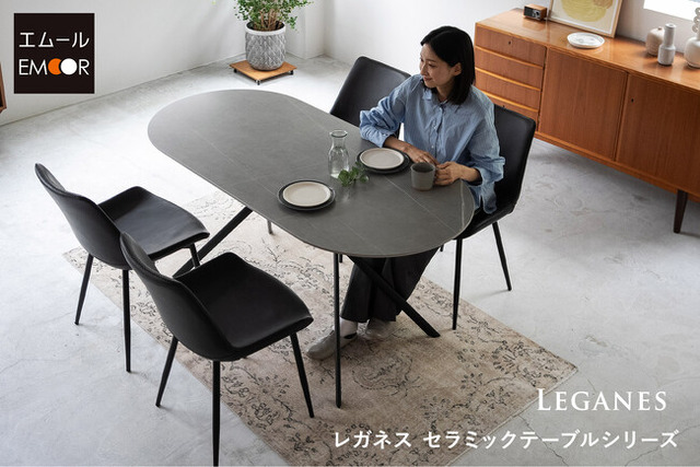 「身体に合った寝る・座る」を提供する健康家具ブランドEMOORを展開する株式会社エムール(東京都立川市:代表取締役 高橋 幸司)は、2025年1月27日より「LEGANES(レガネス) セラミックテーブルシリーズ(以下LEGANES)」の予約販売(2月上旬入荷予定)を開始しました。LEGANESは、上質な石目調デザインのセラミックテーブルとして市場では珍しいオーバル型を採用しました。丸みを帯びたフォルムと細身の脚部がモダンで個性的な雰囲気を演出してくれます。テーブルに合わせたダイニングチェアが付いたダイニング5点セットも同時に販売開始しました。