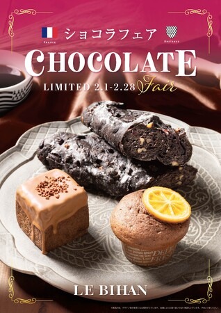 ショコラのキューブパンに、ビターなチョコクリームとバナナを閉じこめてコーヒーチョコをコーティングした「ショコラ・バナーヌ」をはじめ、ココアを混ぜ合わせたルヴァン生地にチョコチップ、クランベリー、クルミを入れて焼き上げた「ショコラフランス」など期間限定の味わいをご用意しております。