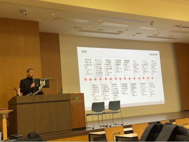 アイラッシュに特化した美容サロンを運営するベンチャー企業、wowwe株式会社(本社:愛知県名古屋市、代表取締役:虫鹿正敏)は2025年1月23日、名古屋大学経済学部で開催された特別講演にて代表の虫鹿がお招きいただき、学生に向けて起業の魅力や課題について講演する機会をいただきました。