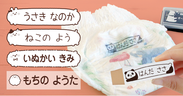 文字の読めないお子さまでも認識しやすいと好評の“いらすとフレーム”シリーズに、もちっとしたカワイイフォルムのシリーズが登場。クマのような、ウサギのような、猫のような…オムツスタンプ以外の用途としても使いたくなる、愛着の湧くイラストです。その他に、チンアナゴやモモンガ、お魚やチンチラなども仲間入りしました。