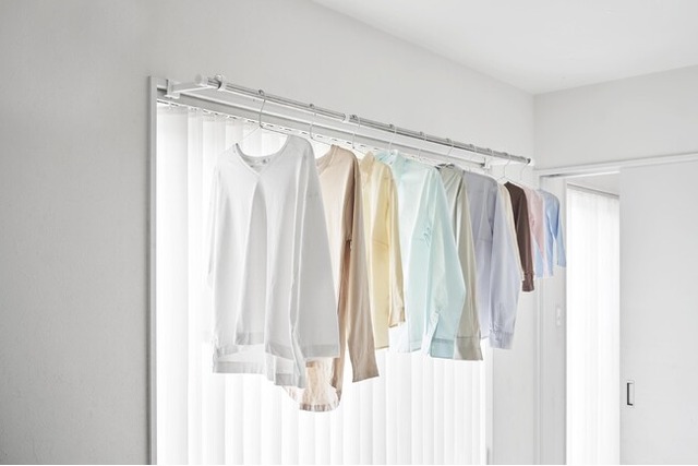 奥行きが広めに設計されているため、洗濯物がカーテンやドアに触れて乾きムラになるのを防ぎます。