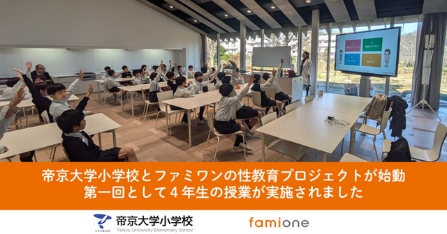 「子どもを願うすべての人によりそい 幸せな人生を歩める社会をつくる」をビジョンに掲げ、法人の従業員向け福利厚生や自治体の住民向け支援を行うヘルスケアサポートサービス「ファミワン」 https://famione.com/benefit/などを展開する株式会社ファミワン(本社:東京都渋谷区、代表取締役:石川勇介)は、帝京大学小学校(東京都多摩市、校長 石井 卓之)と共同で「カラダとココロの包括的性教育プロジェクト」として4年生男子生徒に向けて、「体の変化、育ちゆく体と私」をテーマに性教育授業を実施しました。