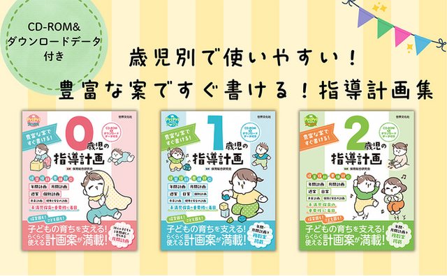 世界文化社は、歳児別の指導計画集『0歳児の指導計画 CD-ROM&ダウンロードデータ付き』『1歳児の指導計画 CD-ROM&ダウンロードデータ付き』『2歳児の指導計画 CD-ROM&ダウンロードデータ付き』を1月30日(木)に同時発売いたしました。
