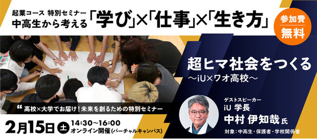 ◆起業コース特別セミナー「超ヒマ社会をつくる~iU×ワオ高校~」