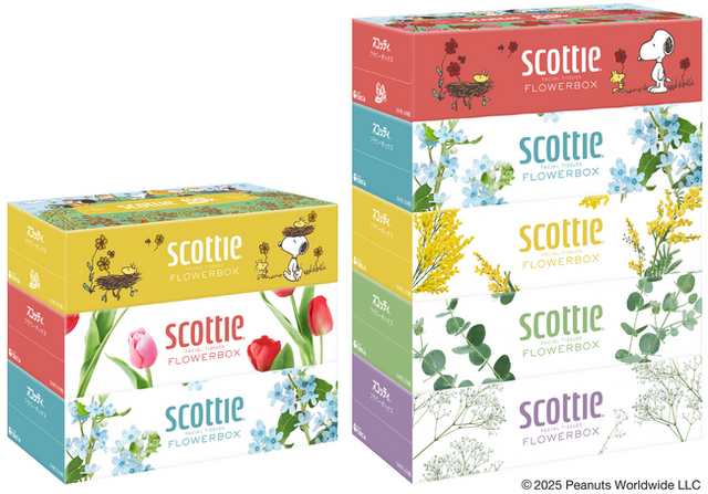 日本製紙グループの日本製紙クレシア株式会社〔住所:東京都千代田区神田駿河台4-6、代表取締役社長:安永敦美〕は、幅広い世代に人気のキャラクター“スヌーピー“デザインパッケージの『クリネックス ティシュー ローション 肌うるる ソフトパック 120組/240組 スヌーピー』と『スコッティ フラワーボックス 250組 3箱パック/5箱パック スヌーピー』を2025年2月1日(土)より数量限定で発売いたします。