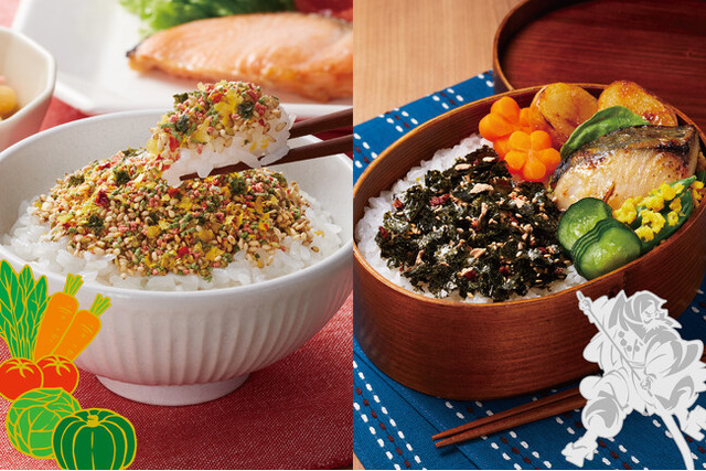 着色料・甘味料不使用が特長の『天下無添』ふりかけシリーズから、ブロッコリーやキャベツ・かぼちゃ・トマト・にんじん等22種類の野菜を使って野菜本来の甘みをお楽しみいただける「天下無添やさいふりかけ」と、ふりかけるだけでのり弁風のごはんができる人気の「のり弁慶ふりかけ」の味をそのままに、甘味料・着色料を使わずに同じ味を再現した「天下無添のり弁慶ふりかけ」を発売します。