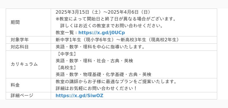 当塾の春期講習は、平均的な個別指導塾と同料金で約3~4倍の指導時間を確保することができます。