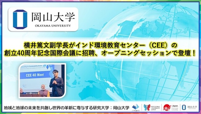 横井副学長は、サラバイ氏とともにECIカウンシルメンバーとしてESDを踏まえた人類と地球全体のウェルビーイングを推進しています。今後はCEEと本学の連携をさらに推し進め、本学が掲げるビジョン「地域と地球のありたい未来の共創」に向けて、マルチステークホルダーかつ多世代連帯で研究・教育・社会貢献の取り組みを加速させていきます。引き続き、地域中核・特色ある研究大学:岡山大学の取組にご期待ください。