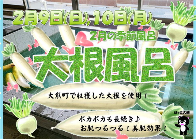 ほっと大熊では、2/9(日)、10(月)の二日間、2月の季節風呂 大根風呂を開催します!