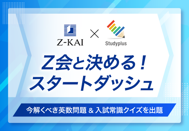本企画では、Z会が厳選した「英数問題」と、受験知識を問う「入試常識クイズ」を、新高校1~3年生向けに「Studyplus」内で出題します。