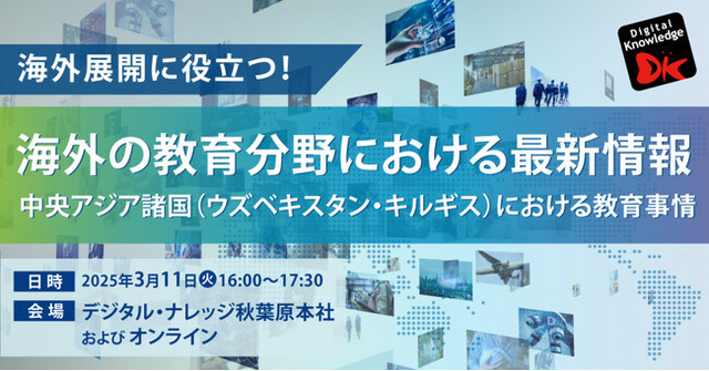 本セミナーでは、デジタル・ナレッジの海外展開に関するご紹介や中央アジア諸国の最新情報、