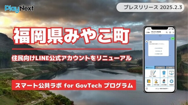 プレイネクストラボ株式会社(本社:東京都品川区、代表取締役:柏 匠、以下 「プレイネクストラボ」)は、福岡県みやこ町(以下「みやこ町」)のLINE公式アカウントを「スマート公共ラボ with LINE GovTechプログラム」を活用してリニューアルし、2025年2月3日(月)より運用を開始することをお知らせします。