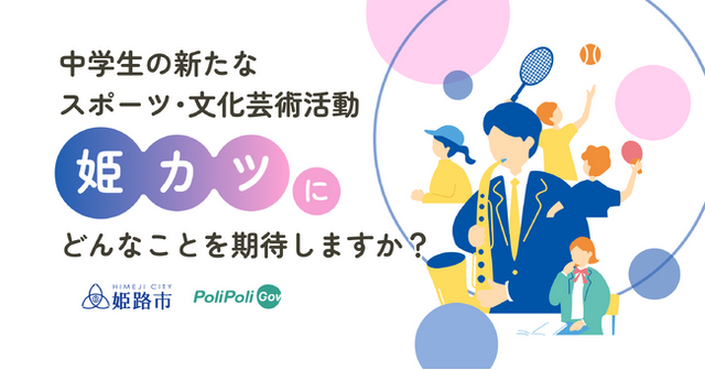 姫路市が実施する「中学生の新たなスポーツ・文化芸術活動『姫カツ』」に関する意見募集に『PoliPoli Gov』が導入されることをお知らせします。
