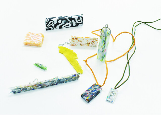 今回のワークショップでは、企業由来の廃棄プラスチックからREMAREが制作した、再生プラスチック板由来のカラフルなシート素材を用いて、ピアス、イヤリング、キーホルダーなどのアクセサリーを制作します。