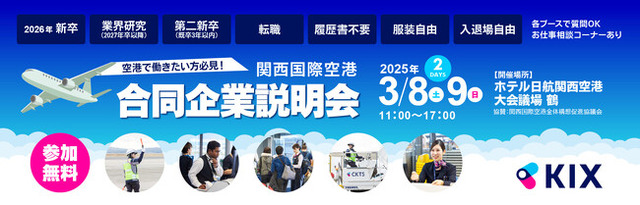 - 関西国際空港合同企業説明会 https://recruit.kansai-airports.co.jp/kap/lp1/index2.htm