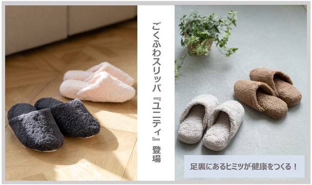 バスタイムから快眠まで、健やかで心地よいライフスタイルを提案する内野株式会社(本社:東京都中央区/代表取締役社長:内野孝信)は、足の専門家である桜美林大学名誉教授の阿久根英昭先生と共同開発した、ごくふわスリッパ「ユニティ」をリリースしたことをお知らせいたします。両者の知見と技術を結集させ、毎日履くからこそ足元から健康づくりをサポートするスリッパを!というコンセプトから誕生しました。全身の土台である「足裏」。「足裏」から健康を作り上げるために、ごくふわスリッパ「ユニティ」でおうち時間を過ごしてみてはいかがでしょうか。(https://www.uchino.co.jp/)