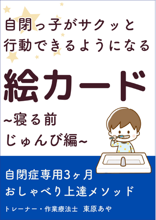 はじめまして 発達科学コミュニケーショントレーナー東原あやです。自閉症のお子さんの癇癪を解消して、会話力をおうち療育で伸ばす専門家として活動しています。この度は、言葉の遅れのある自閉症のお子さん向けに寝る前の準備をスムーズにする絵カード付き小冊子をリリースいたしました。