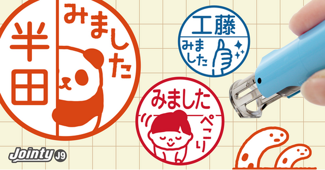 キャップレスで軽い押し心地の回転式ネーム印「Jointy J9」を採用。浸透印ではなくゴム印タイプのため、 イラストの細かい部分も鮮明に表現できます。持ち歩きしやすい工夫がされており、スタンプ台内蔵で連続押印してもかすれません。