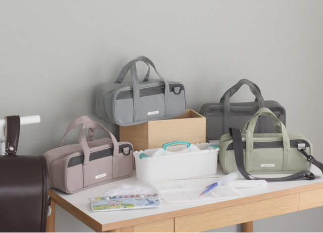 絵の具セット、書道セット、裁縫セットといった、小学校での授業で使う学習道具の専用ケース。