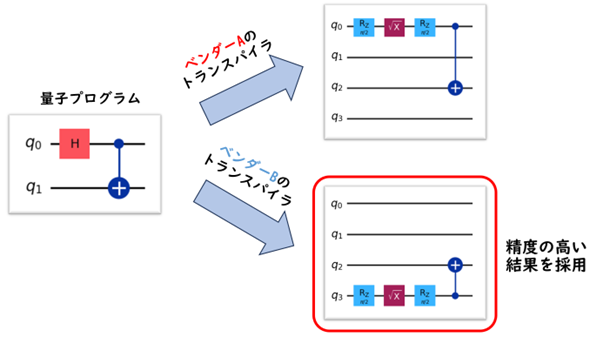 これにより、ユーザーが特定の企業や研究機関(以下:ベンダー)に縛られずにトランスパイラを選択でき、より精度の高い実行結果を得られるようになります。(図1)