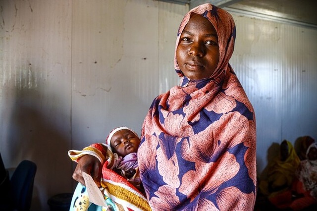 南ダルフール州の避難民キャンプに暮らす親子。女性はMSFの栄養プログラムに参加した=2024年12月19日 (C) Abdoalsalam Abdallah