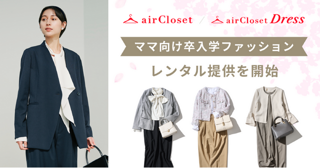 株式会社エアークローゼット(本社:東京都港区、代表取締役社長 兼 CEO:天沼 聰)は、月額制ファッションレンタルサービス『airCloset(エアークローゼット)』およびドレスレンタルサービス『airCloset Dress(エアクロドレス)』において、ママ向けの卒業式・入学式に適したお洋服のレンタル提供を開始しました。