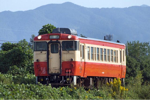 都圏色)と鹿児島車両センター所属のキハ40 8038(一般気動車標準色)の2両を連結し、日南線、