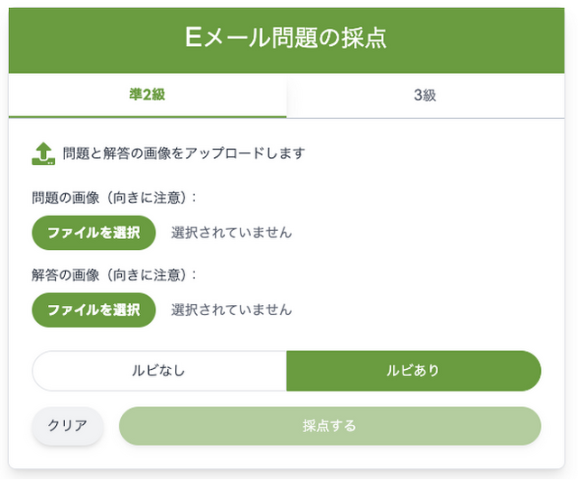 ユーザーがEメール問題の採点ページで「ルビあり」を選ぶだけで、自動的にふりがなが付いた解説が表示されます。スマホやPC、タブレットいずれでも同様に機能します。