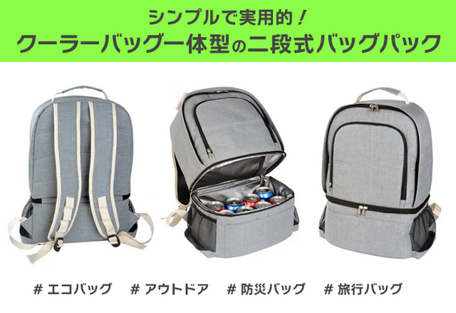 2月6日プロジェクトスタート!ありそうでなかった二段式バッグパック。下段はクーラーバッグになっているので、日常の買い物や花見やピクニックなどのアウトドアなど多方面で活躍します。保冷機能が不要という場合は濡れたものや分けて入れたいものなど使い方は無限大。大容量なので防災バッグなどにも使えます。シンプルなデザインなので、どなたでも気軽に持ち歩けます。