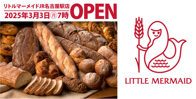 ジェイアール東海フードサービス株式会社(本社:愛知県名古屋市、代表取締役社長:岩下賢一)と株式会社タカキベーカリー(本社:広島県広島市、代表取締役社長執行役員:坂本 和久)は、2025年3月3日(月)より、「リトルマーメイド JR名古屋駅店」をJR名古屋駅広小路口に移転オープンいたします。