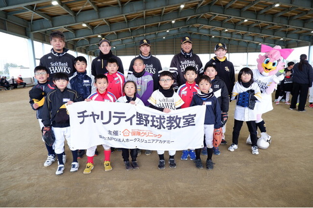 福岡ソフトバンクホークスの2024年シーズンオフィシャルスポンサーの保険ショップ『保険クリニック(R)』(運営:株式会社アイリックコーポレーション)は、1月11日(土)に福岡県内にてホークスジュニアアカデミーのコーチたちを迎えてチャリティ野球教室を開催いたしました。当日は63名の小学生たちが参加しました。