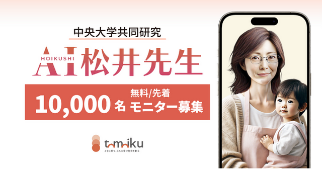 ■無料モニターを募集します先着10,000名様を対象に、AI保育士松井先生を無料でご利用いただけるモニターを募集します。