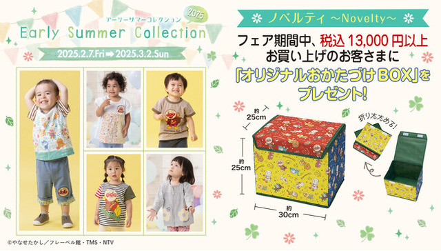 また、商品の発売にあわせて、店頭およびバンダイナムコグループ公式通販サイト「プレミアムバンダイ内アンパンマンキッズコレクションオンラインショップ」( https://p-bandai.jp/anpanman-kids/ )にて対象商品を13,000円(税込)以上お買い上げのお客様に「オリジナルおかたづけBOX」をプレゼントするキャンペーンを開始いたします。