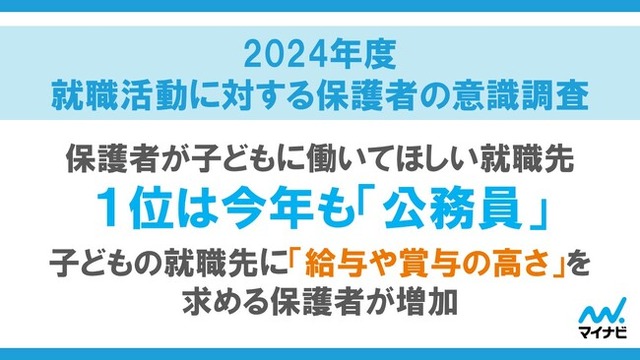 株式会社マイナビ(本社:東京都千代田区、代表取締役 社長執行役員:土屋芳明)は、大学4年/大学院2年以上で今年就職活動を終えた、もしくは現在活動中の子どもを持つ保護者を対象に実施した、「マイナビ 2024年度 就職活動に対する保護者の意識調査」の結果を発表しました。