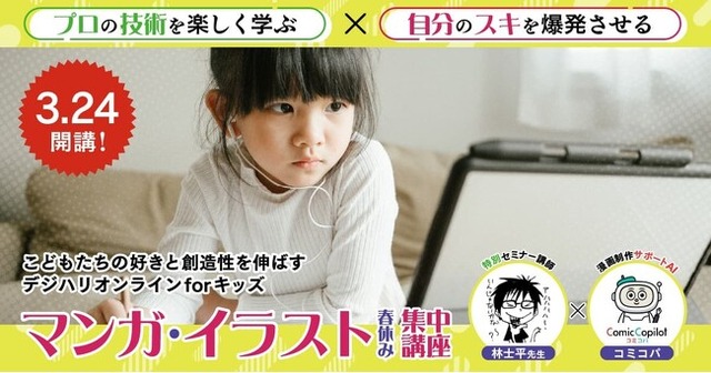 IT関連及びデジタルコンテンツの人材養成スクール・大学・大学院を運営するデジタルハリウッド株式会社(本社:東京都千代田区、代表取締役社長兼CEO:春名啓紀、学長:杉山知之)では、こども向けオンライン講座「デジハリオンラインforキッズ ‐こどもたちの好きと創造性を伸ばすマンガ・イラスト春休み集中講座‐」を3月24日に開講いたします。