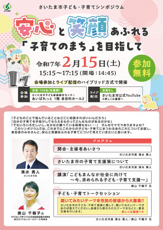 当日は、シンポジウムの様子を「さいたま市公式YouTubeチャンネル」 でライブ配信も行います。