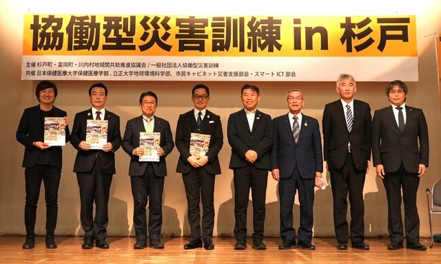 主催 杉戸町・富岡町・川内村地域間共助推進協議会、一般社団法人協働型災害訓練(CDT)