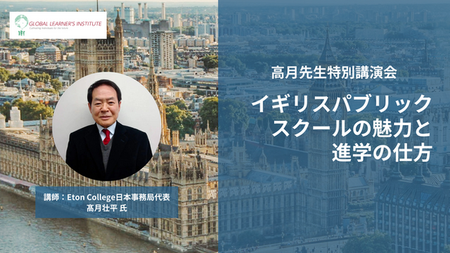 GLIは、「イギリスパブリックスクールの魅力と進学の仕方」 をテーマに、Eton College日本事務局代表の高月壮平先生をお招きし、特別講演を行います。