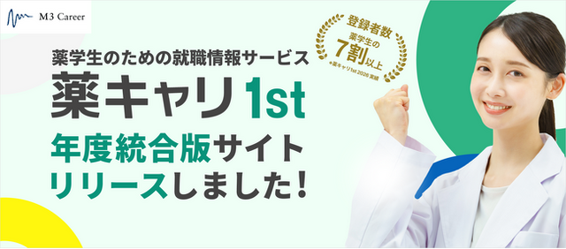 医師会員33万人以上を有するエムスリーグループで医療人材ビジネスを展開するエムスリーキャリア株式会社(本社:東京都港区虎ノ門)は、2027年4月以降に就職する予定の薬学生と既卒生の皆様へ、全学年を対象とする薬学生向け就職情報サービス『薬キャリ1st』の年度統合版を、2025年2月1日(土)にリリースいたします。(『薬キャリ1st』URL:https://pcareer.m3.com/1st)