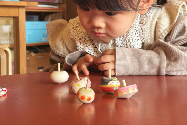 作ったコマを回して色の変化を楽しめます。